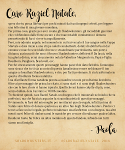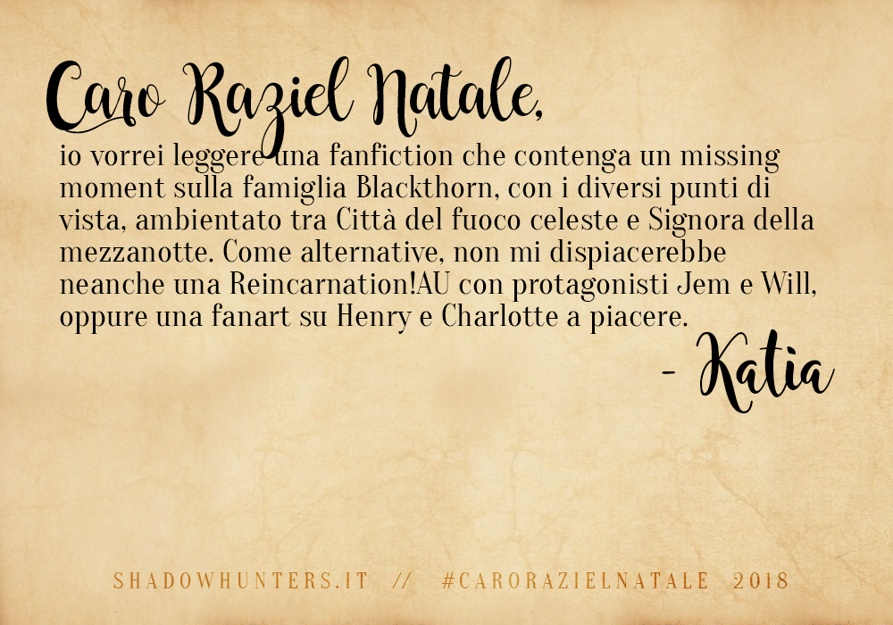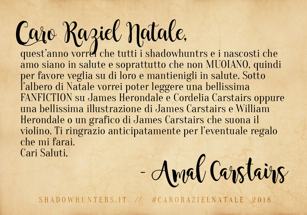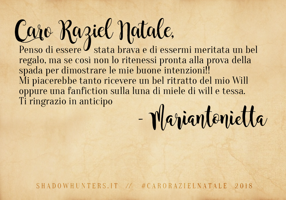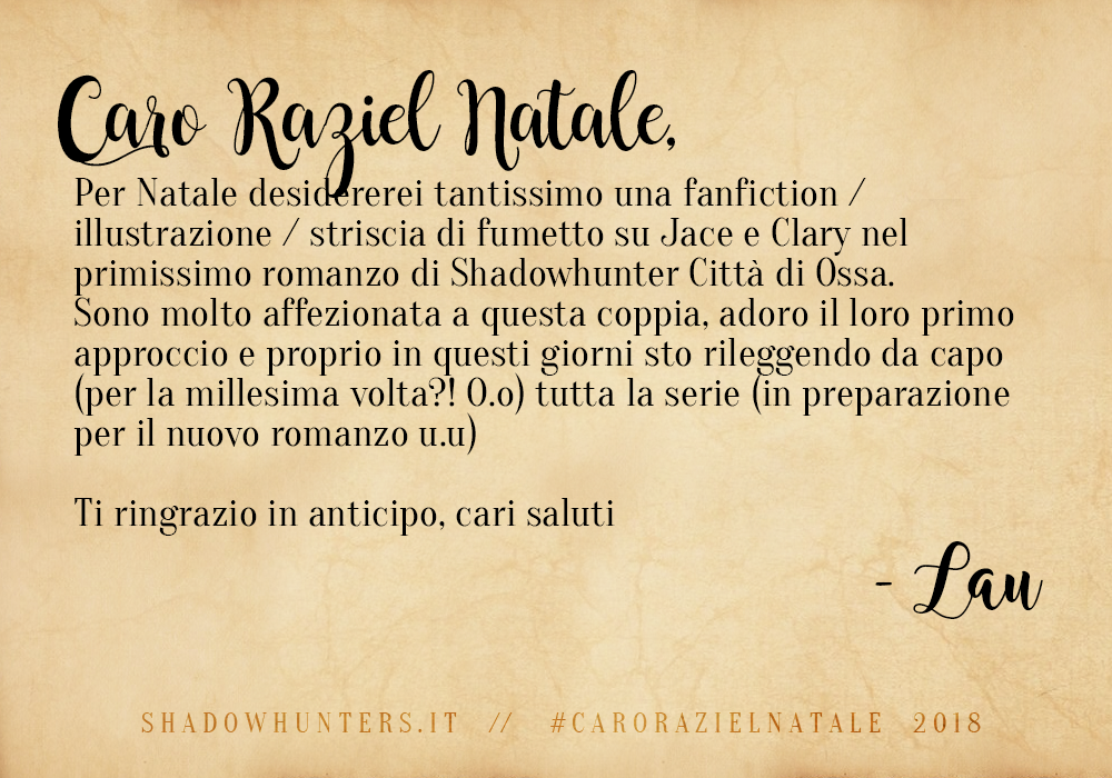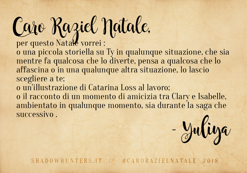 Shadowhunters, riusciamo finalmente a portarvi i risultati della nostra iniziativa di fine anno, “Caro Raziel Natale” (e siamo dispiaciutissime per il ritardo!). ;D