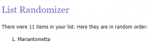 (NB: in lista c’erano solo 11 nomi perché Alessandro, non avendo consegnato, è stato squalificato.)